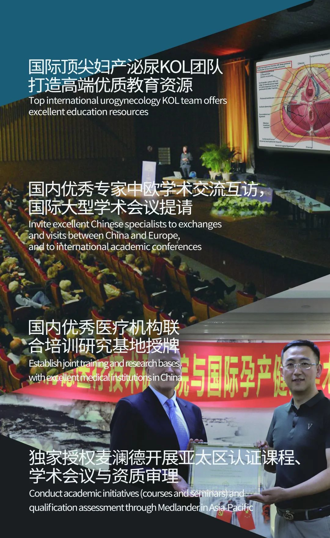 我司吸纳了多位国际知名泌尿妇科领域专家,并已与其中的10位专家建立了联系,如英国知名妇产科专家、国际泌尿协会终生成就奖获得者Linda Cardozo教授,荷兰泌尿妇科专家、国际泌尿协会委员会主席JP Roovers教授等。伟易博将通过这些专家资源,为国内医疗人士带来国际前沿的科研成果分享和优质的教育资源。