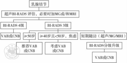 乳腺结节采用BI-RADS 分级系统评估风险,并根据病情补充MG和MRI 减少漏诊,还应考虑病灶大小、硬度以及患者年龄等细化分级。